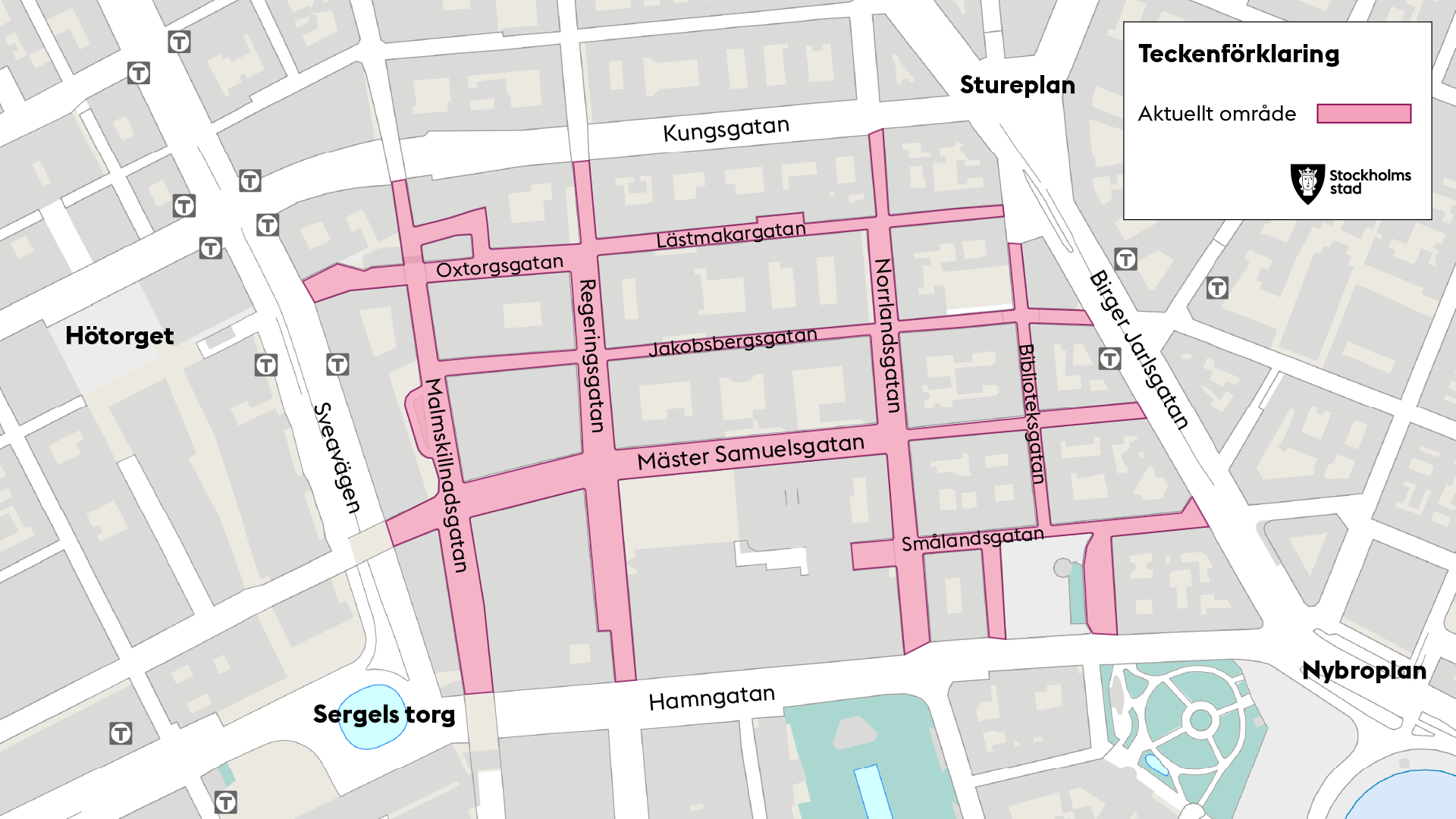 Miljözonen omfattar delar av centrala Stockholm, inklusive följande gator: